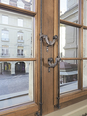 – Hybride Lösungen: Auch moderne Getriebeverschlüsse lassen sich durch unsere aufgesetzten Espagnoletten und Zierbänder optisch veredeln, ohne auf zeitgemässen Komfort und Sicherheit verzichten zu müssen.