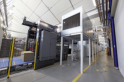 Die Chroma X Pro 2100 produziert im Dreischichtbetrieb. Damit der Betrieb gesichert ist, muss auch die ganze Peripherie rund um die Flexodruckmaschine im Dauerbetrieb absolut zuverlässig arbeiten. Aus Erfahrung weiss die Model AG, dass die von der Hunkeler Systeme AG konzipierten und installierten Anlagen stabil funktionieren und ihren Beitrag zu einer wirtschaftlichen Produktion leisten.