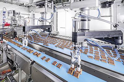 Die Schweizer Delica AG verpackt am Standort Meilen ihre schokoladeüberzogenen Biscuits mit einem Schubert Flowpacker.
