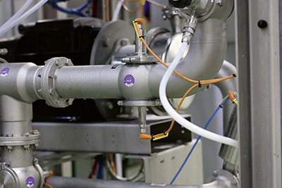 An verschiedenen Stellen der Anlage überwachen Druck- und Temperatursensoren den Prozess und leiten die digitalen Messwerte sowohl an die SPS als auch an den digitalen Zwilling der Anlage.